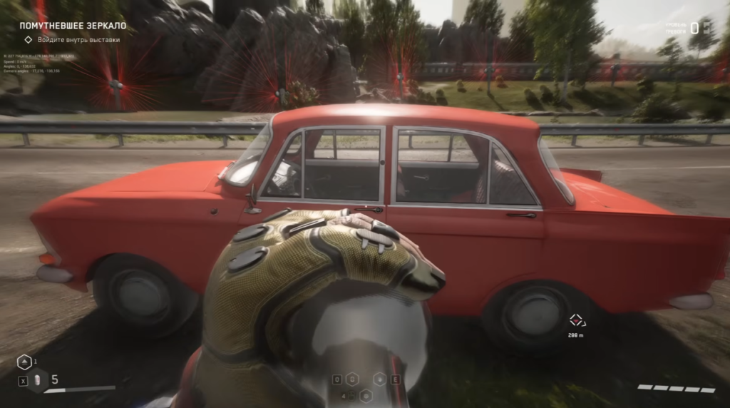 - Fun fact: If you get behind the wheel of a “Moskvich” while in this drunken state, the screen blur effect will disappear immediately. By the way, when accelerating in the car, you can see how P-3 manually shifts gears.