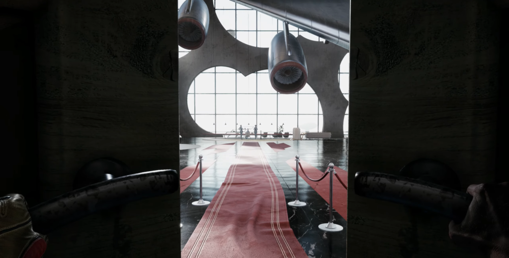 You’ll soon find yourself in the lobby—take a close look at the shelves, then continue following Filatova. On the bridge, a key dialogue awaits about the nature of hallucinations and Charles’s true identity. Next comes a cutscene and a passage through the door.