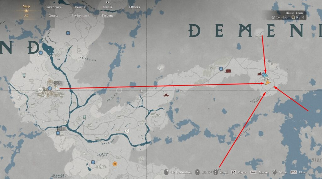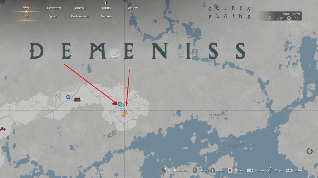 - Landmark on the map: Dminis location, directly below the letter “E” on the global map.
