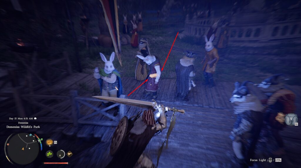 This is where the festival takes place, bringing together special NPCs wearing rabbit masks. They will be our main target.
