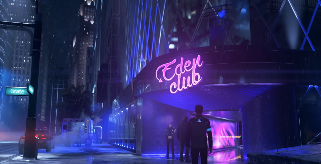 Follow Hank into the Eden nightclub. Head to the back of the club—you need to get to the lounge area. After Hank talks to the officers, go to the room where the crime took place.