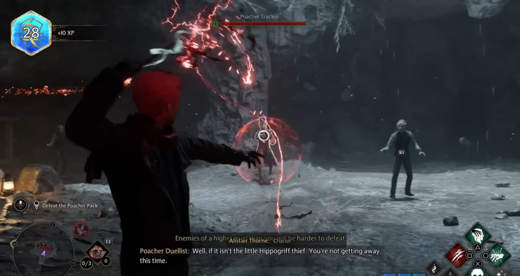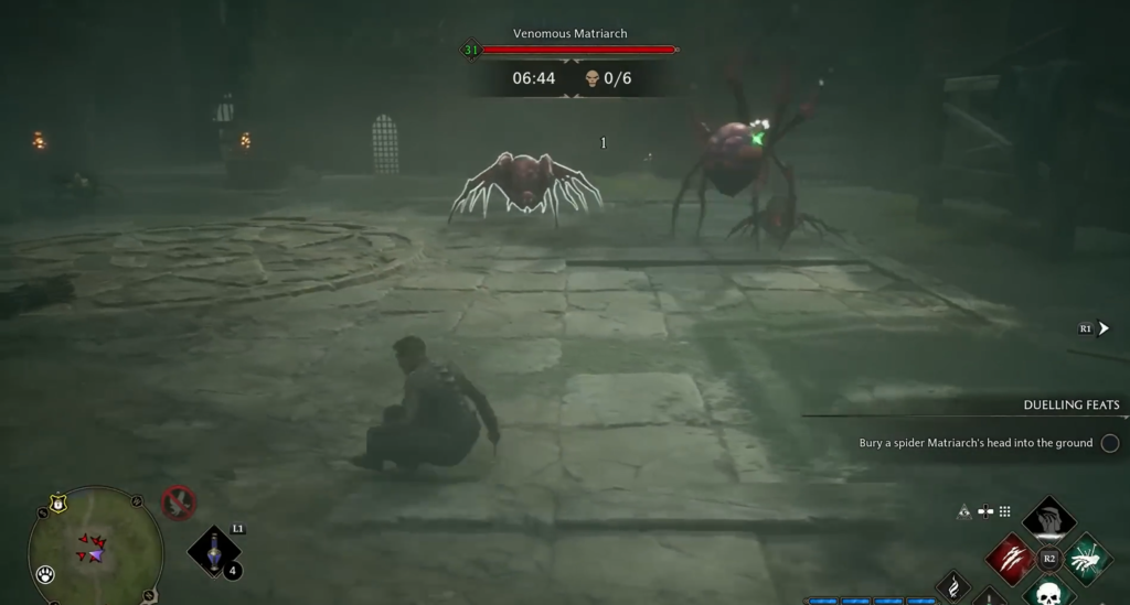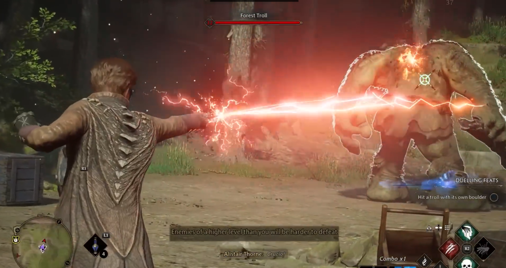 Features: Paralysis does not affect large enemies (such as trolls), but the debuff is still applied. However, Crucio works perfectly on “Notable Enemies” (mini-bosses with a large health bar).