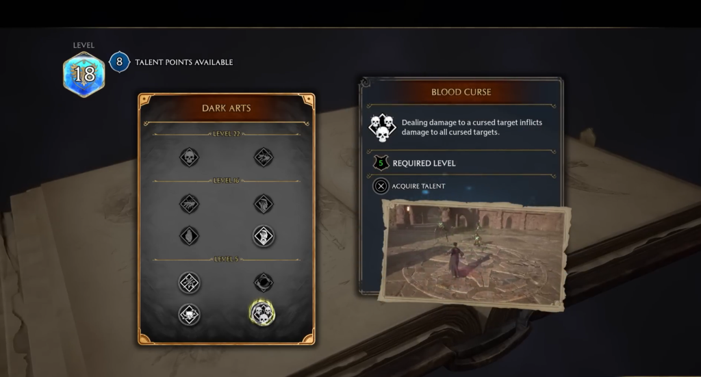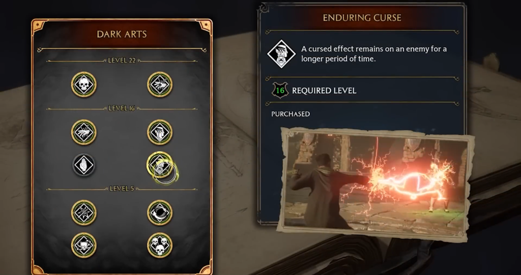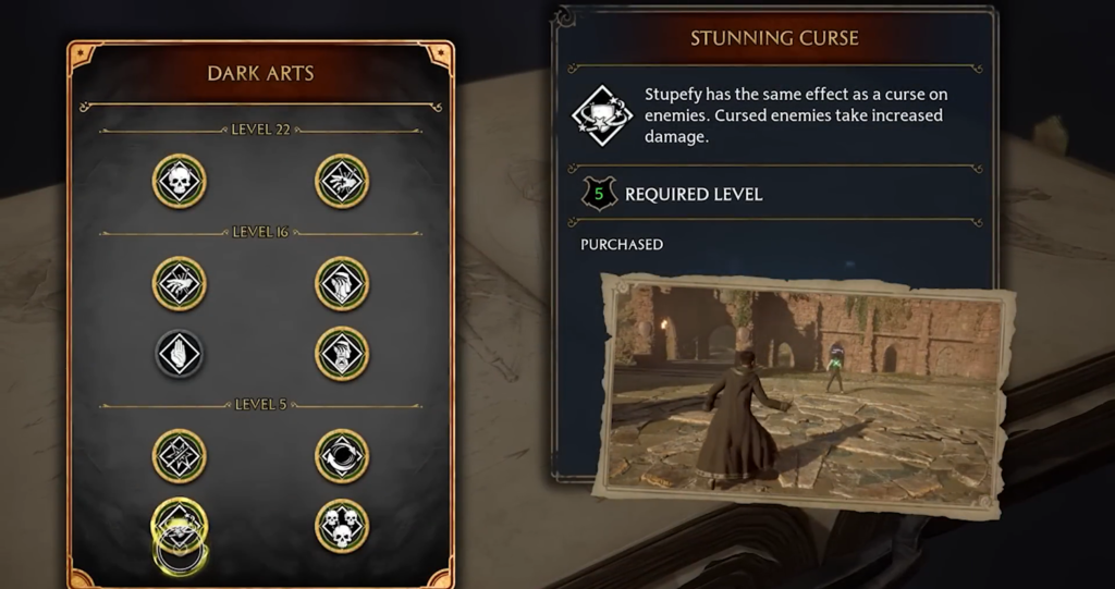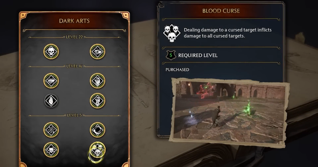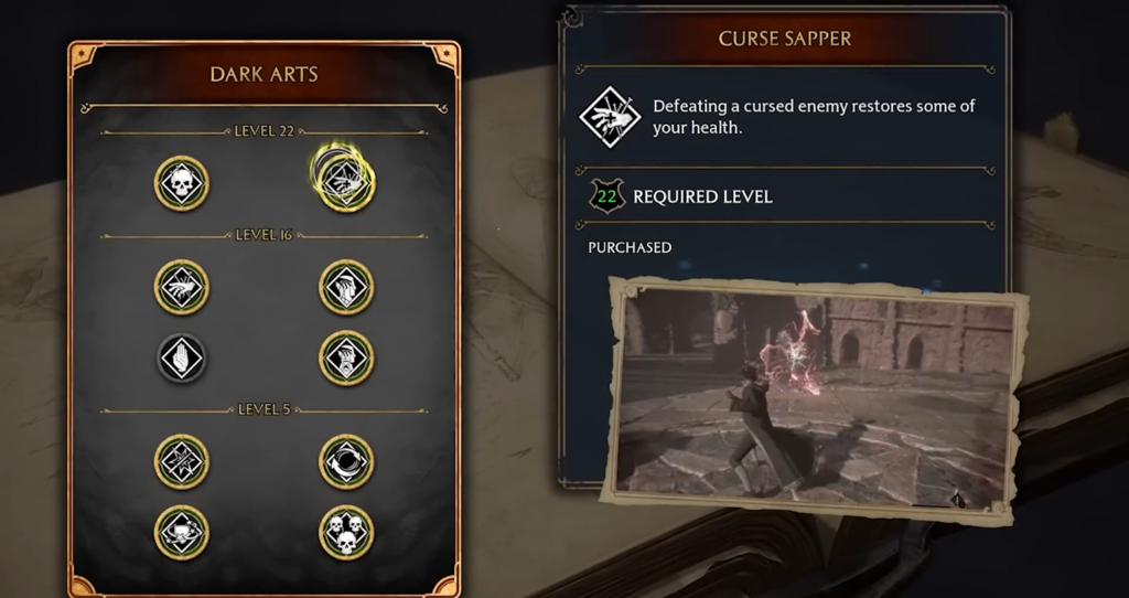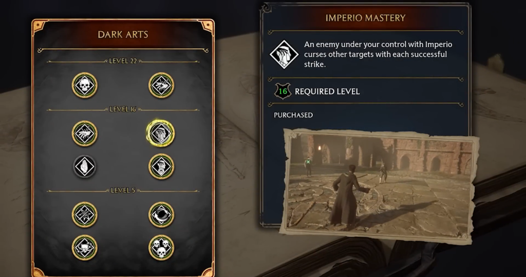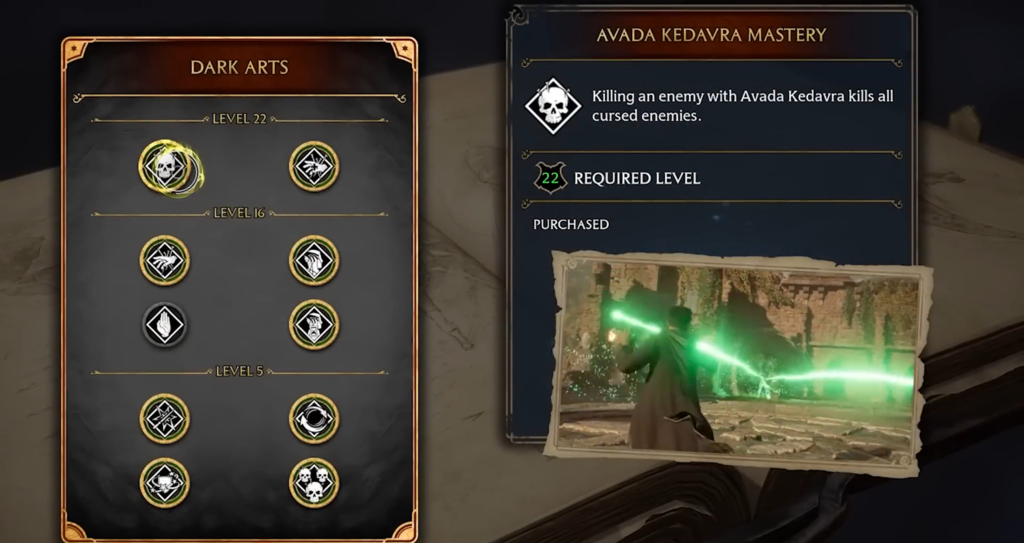 Even if you don’t have the Unforgivable Curses yet, you can start building the Dark Mage build immediately after unlocking the talent tree (after the story quest “Rest in Peace, Galcrad”).