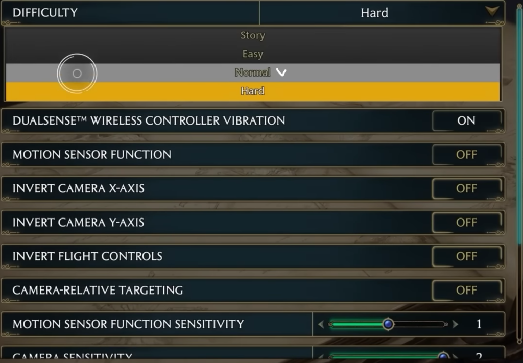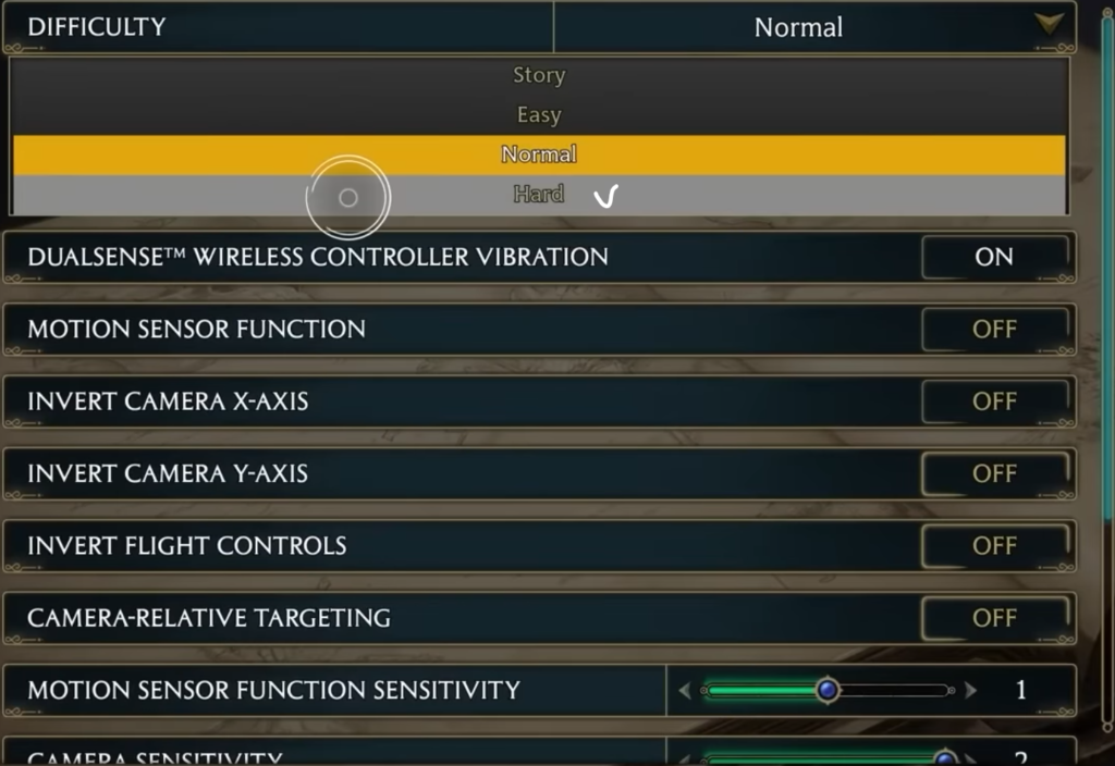 On the “Story” and “Easy” difficulty levels, damage isn’t increased compared to Normal, but the game provides large on-screen prompts for dodging and parrying, which greatly simplifies the timing.
