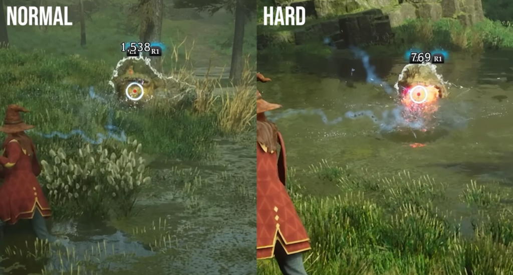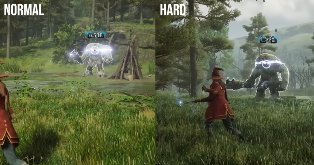 Diffindo’s troll spell deals the same damage on both normal and hard difficulty.