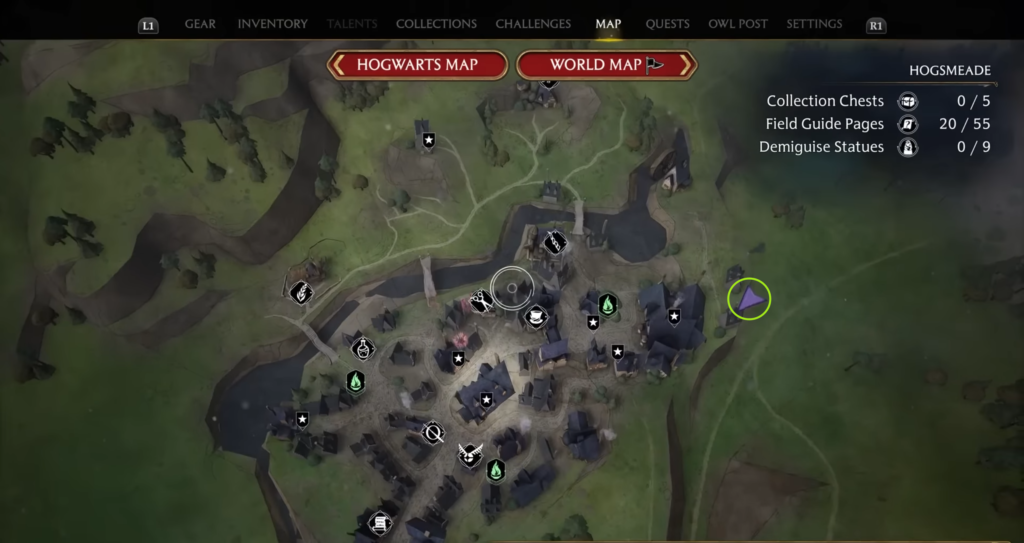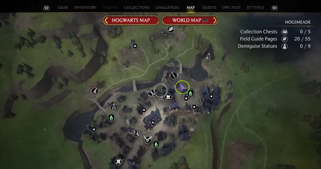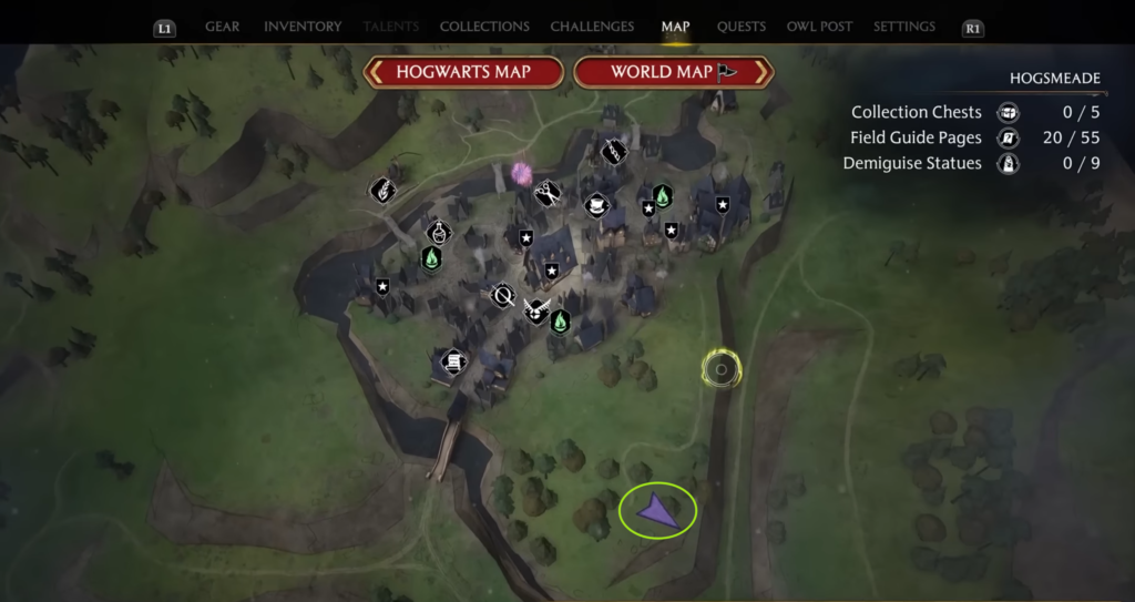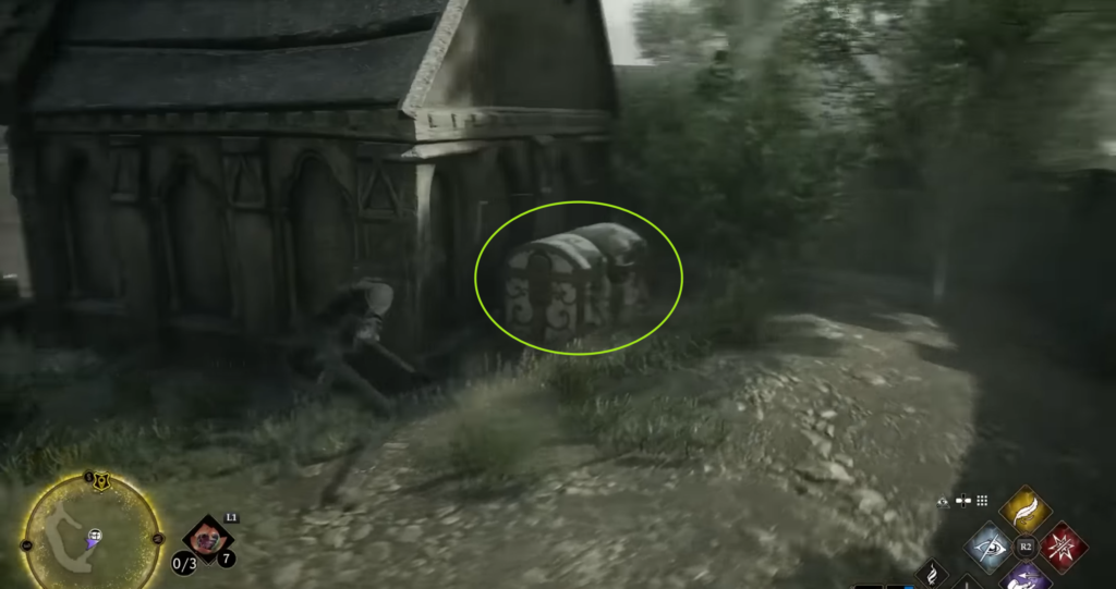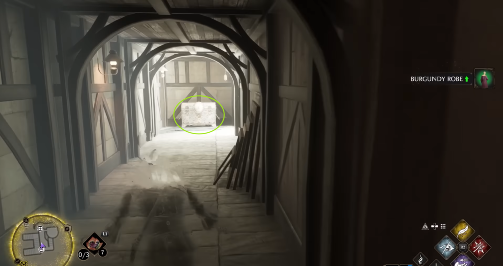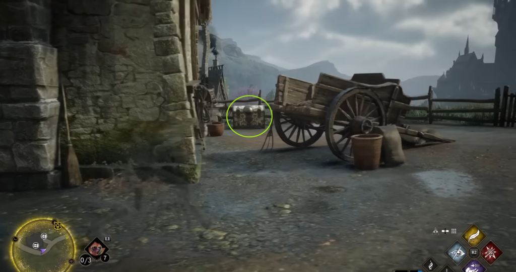 Хогсмид — идеальное место для фарма, так как деревня небольшая, а сундуков здесь целых 12 штук! Применяйте невидимость перед каждым из них.