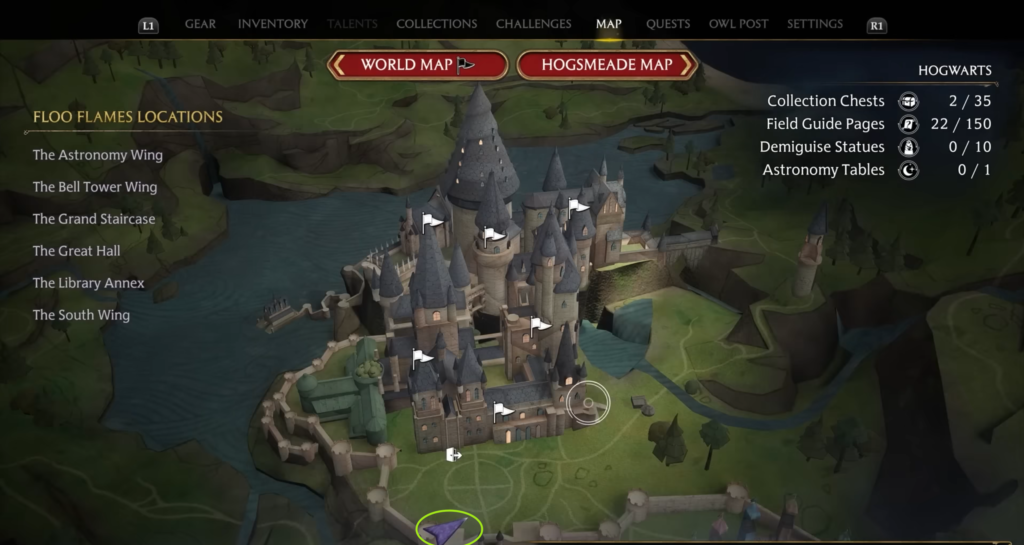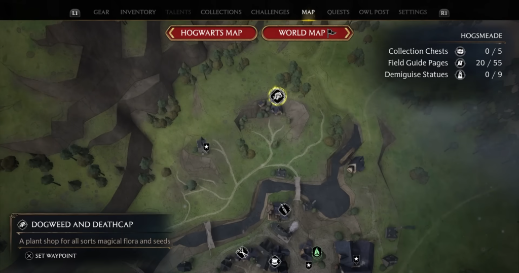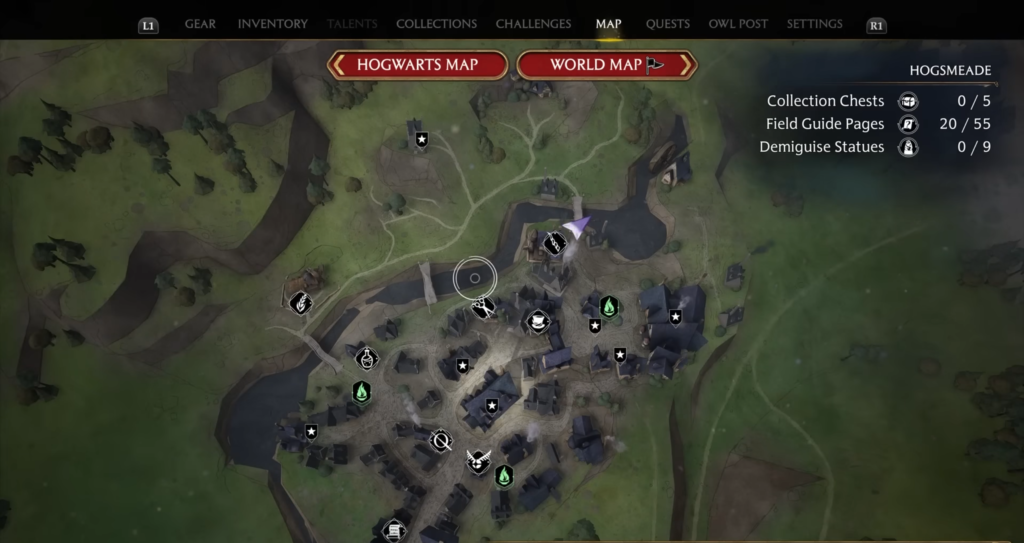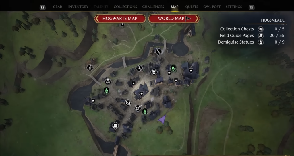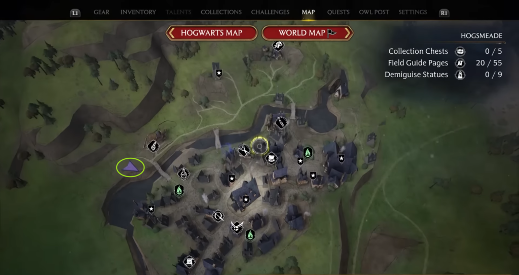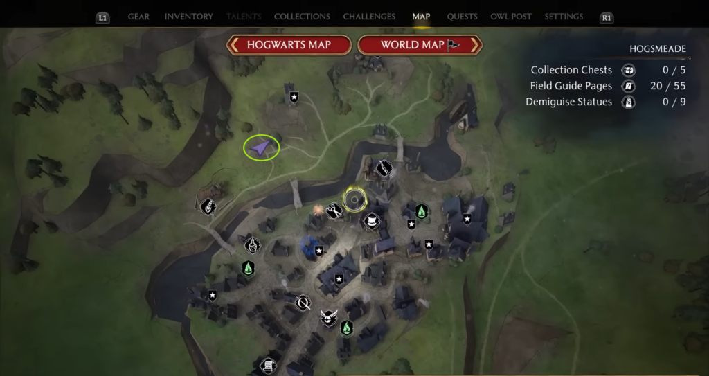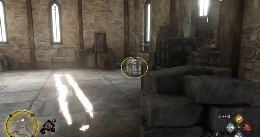 Хогсмид — идеальное место для фарма, так как деревня небольшая, а сундуков здесь целых 12 штук! Применяйте невидимость перед каждым из них.
