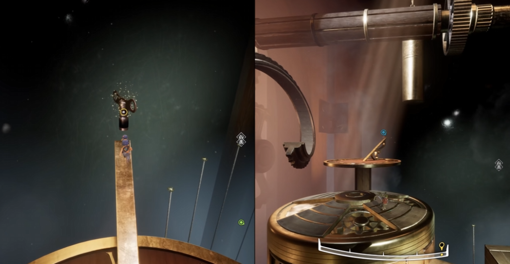 - Insert them into the two key platforms and turn them to activate the mechanism.