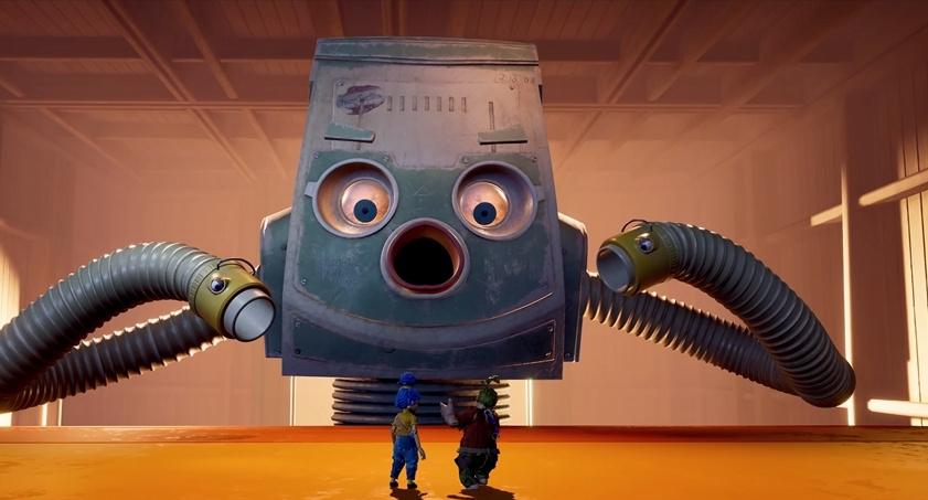 The Vacuum Tower relies on a single offensive pattern: it fires incendiary spray cans at the characters. After the attack, a platform on the far side of the arena begins to rise, enabling your counterplay.