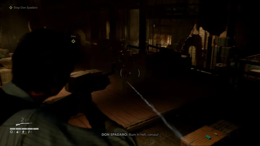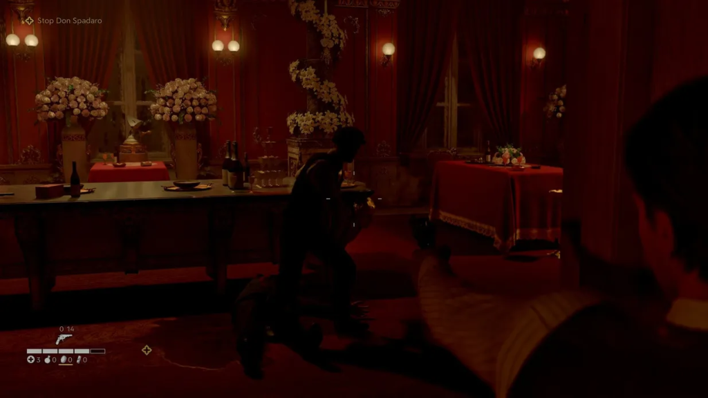 Reach Fontanella and execute a stealth attack from behind. Chase after Spadaro while dispatching enemies along the way. Always search fallen enemies for items.