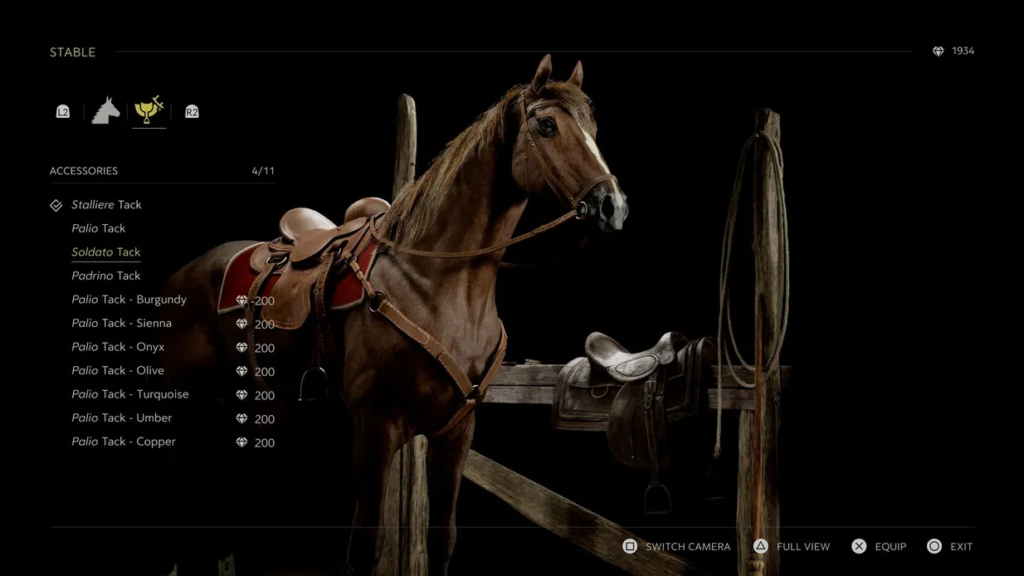 Follow Isabella as Baron Fontanella arrives at the vineyard. This sequence unlocks the stable feature, where you can access your complete horse collection, purchase new mounts, and buy accessories using dinari currency. Select your preferred horse and confirm your choice by holding the F key.