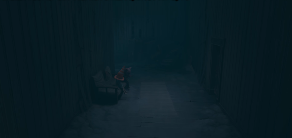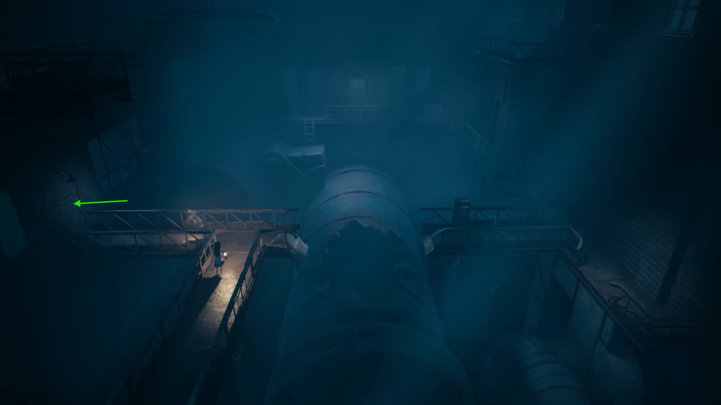 1. Factory Office At the beginning of the factory, after your first encounter with the child locked behind bars, climb the stairs on the right and solve the cooperative puzzle. Open the door on the left and step out onto the platform with a staircase leading to the pipes. The spot you’re looking for is the chair standing against the wall right behind the computer desk.