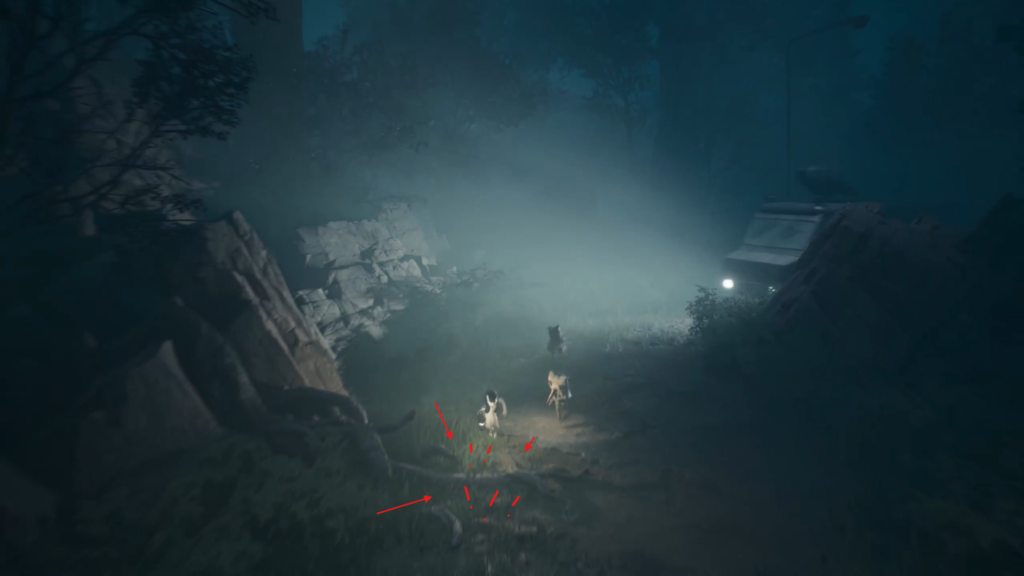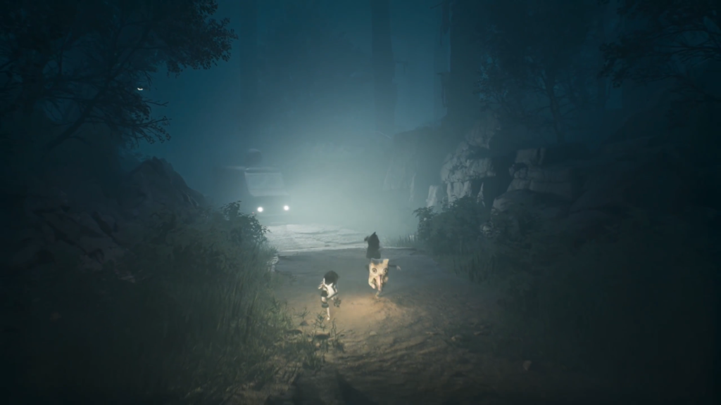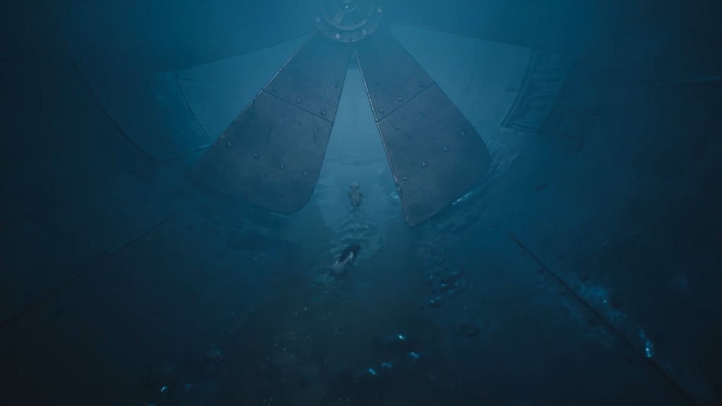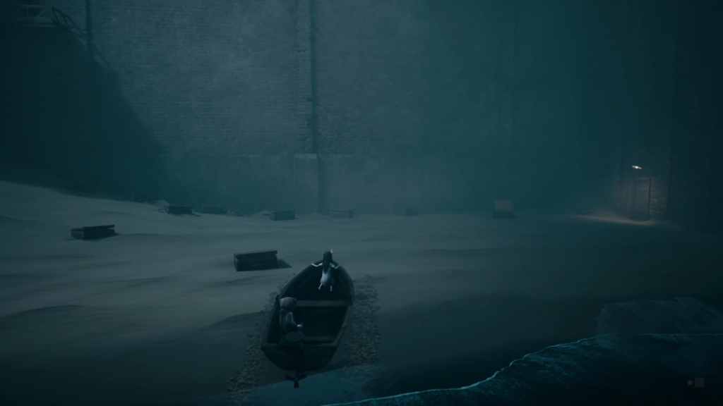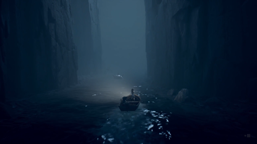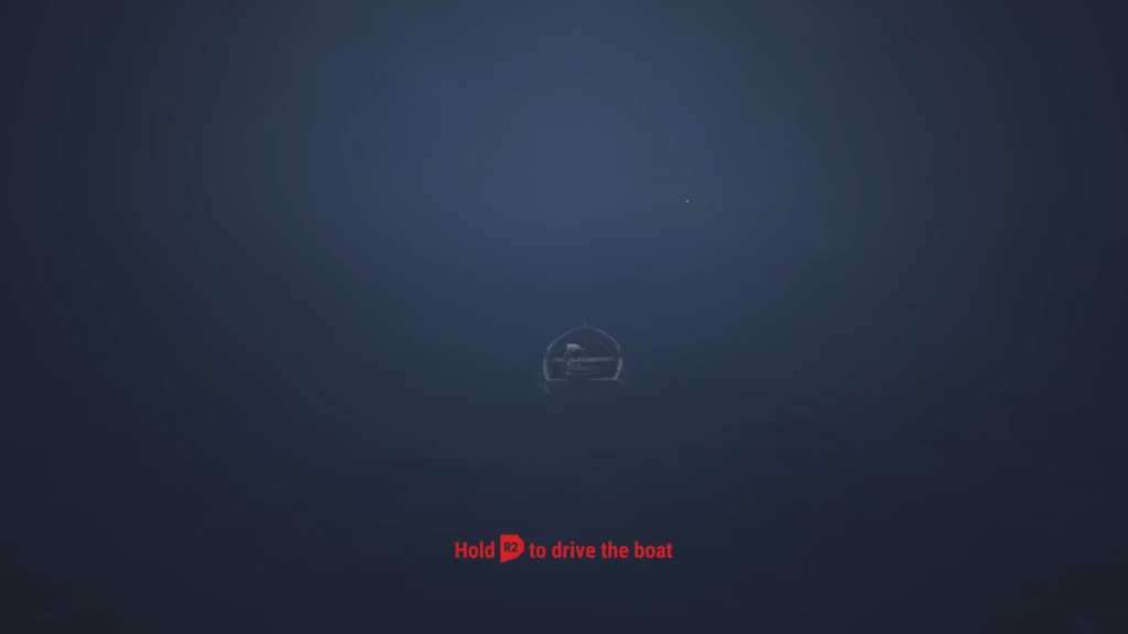 After the opening cutscene, you’ll find yourself in a boat in the middle of a foggy ocean. Steer the boat toward the glowing red buoys (use W/R2). Soon you’ll spot your sister in the water. After rescuing her, keep following the buoys until you reach the rocks. Pass through the narrow strait to a fork in the path: either route will lead you to the beach, where the boat will run aground.