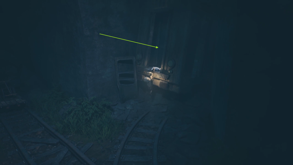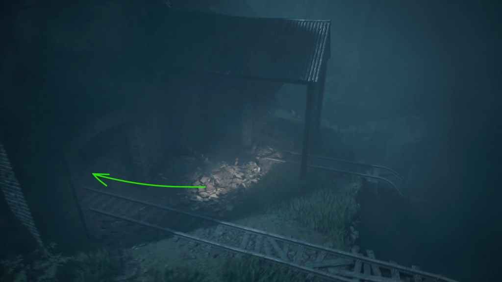 Go through the right door onto the bridge, jump over the gaps, and lower the ladder. On the left, open the small grate and crawl through the sewer until you reach the exit to the old railroad depot.