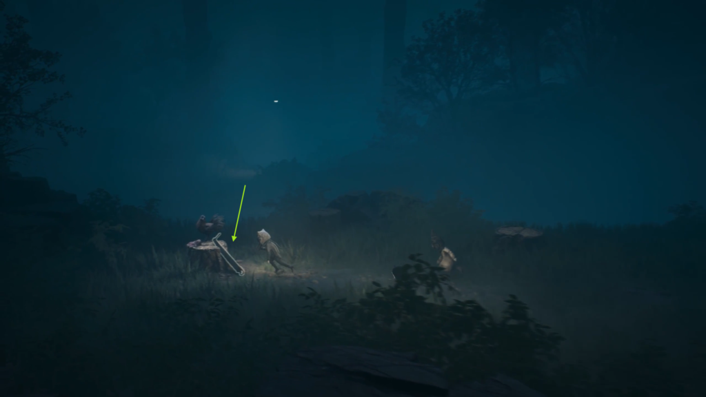 Rest Area #2: After jumping across the chasm on the bridge, sit on the chair next to the first hanging creature.