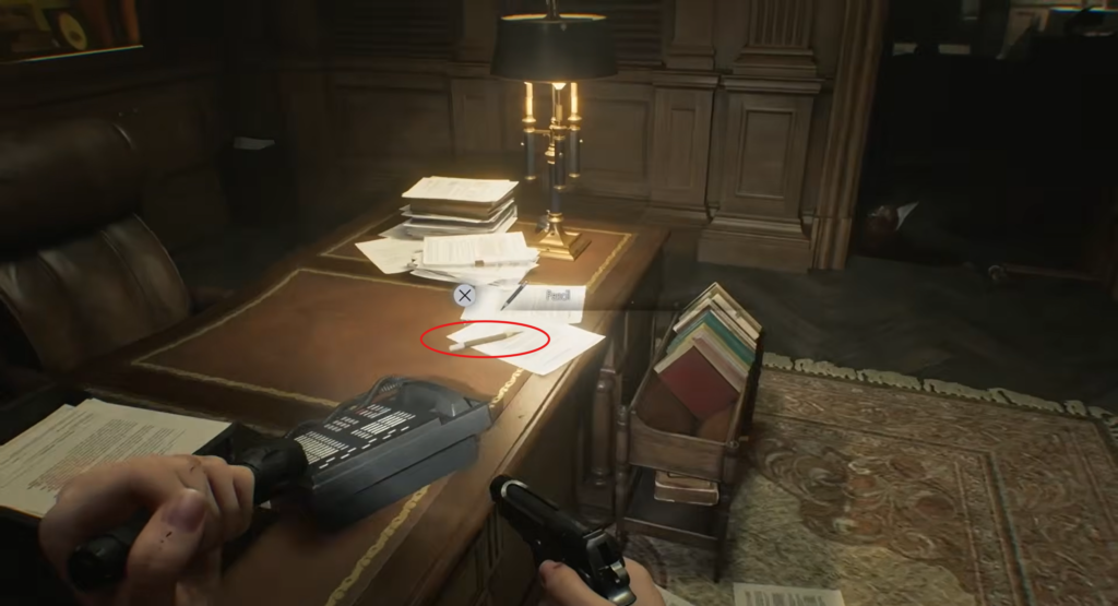 To find the solution to the first box, go to the coffee table in the Chairman’s Office.