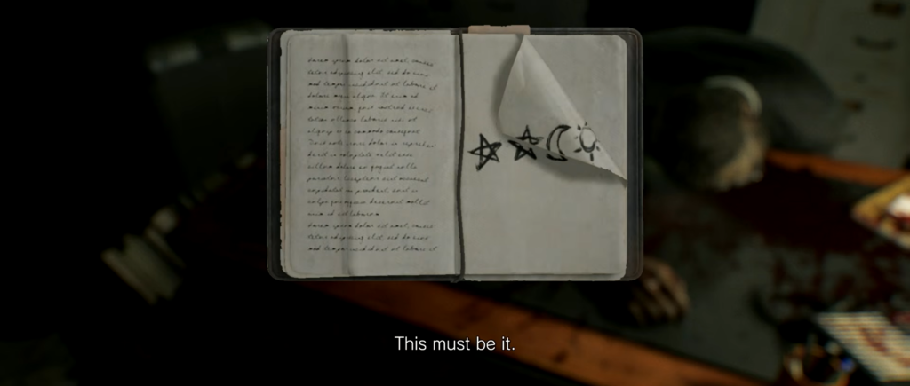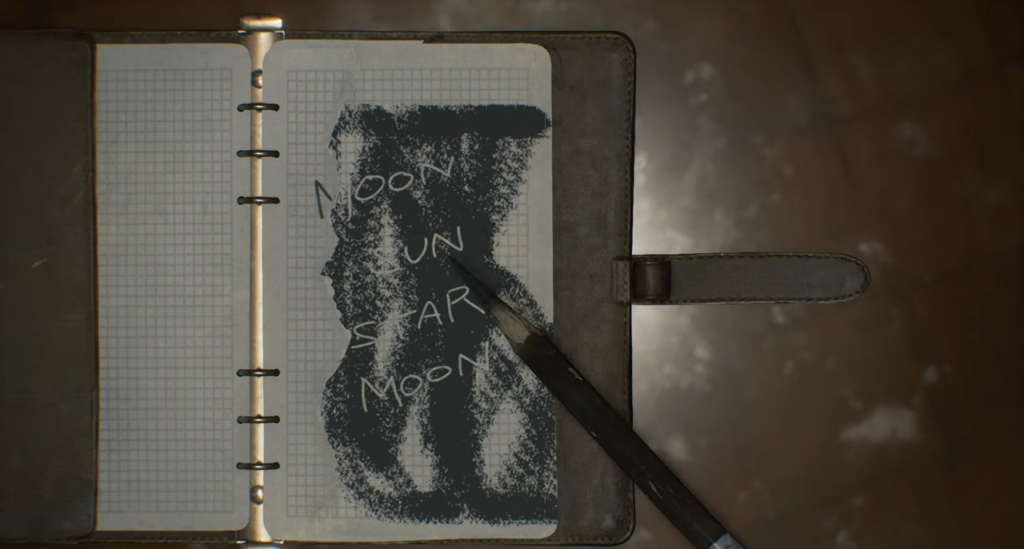 The clue to this puzzle is right on the security chief’s desk, next to the Level 3 ID wristband. The note contains the password: Star, Star, Moon, Sun.