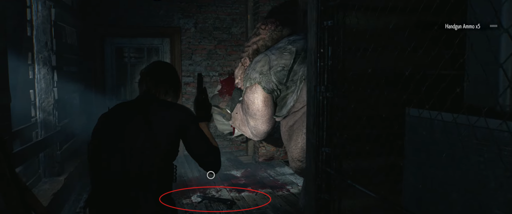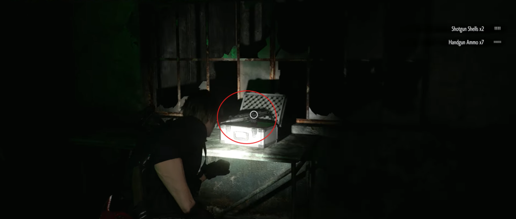 - Description: When Leon escapes from Victor Gideon, he ends up in the Attic and finds Chunk devouring a victim. It was this victim who dropped the MSBG 500 shotgun. You can sneak up quietly and grab the weapon before the monster reacts, or snatch it while maneuvering around the arena. The shotgun is absolutely essential for the first fight with this boss!