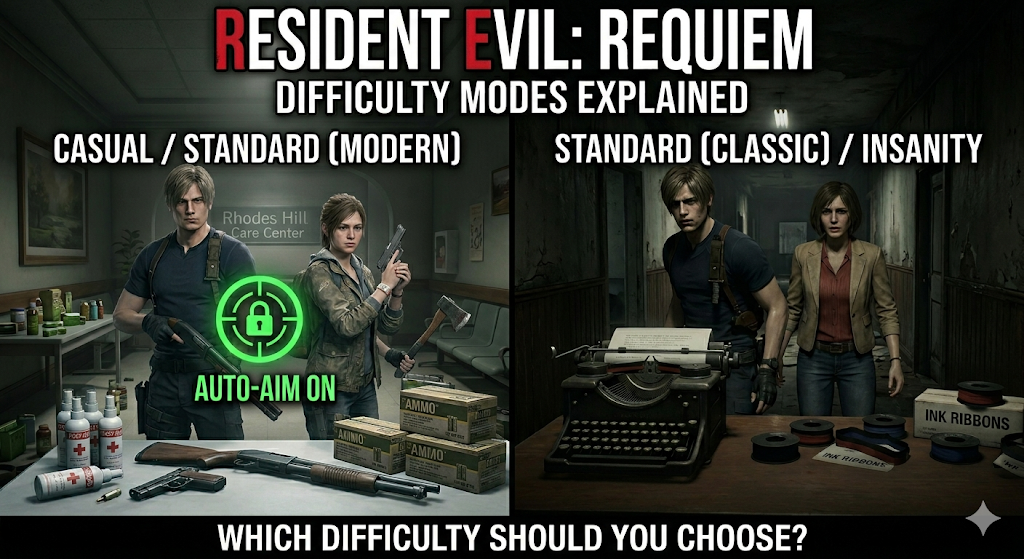 If you’re just starting your first playthrough of Resident Evil 9: Requiem, the difficulty selection screen might raise a few questions. This is especially true for players coming to the game straight from the Resident Evil 4 remake—some of the mode names will seem unfamiliar, and the presence of two “Standard” versions can be confusing.