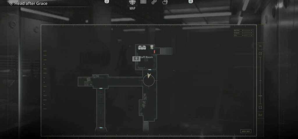 3. Grace — Waiting Room Stairwell: Go through the Waiting Room and go down to the first floor of the stairwell leading to the Lead Researcher’s Office.