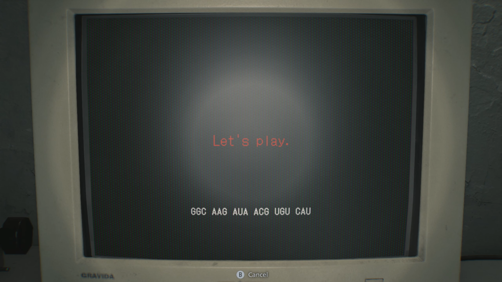 As soon as you solve the knot puzzle, the machine will display an ominous cryptic message: “Let’s play,” along with a long mRNA code.