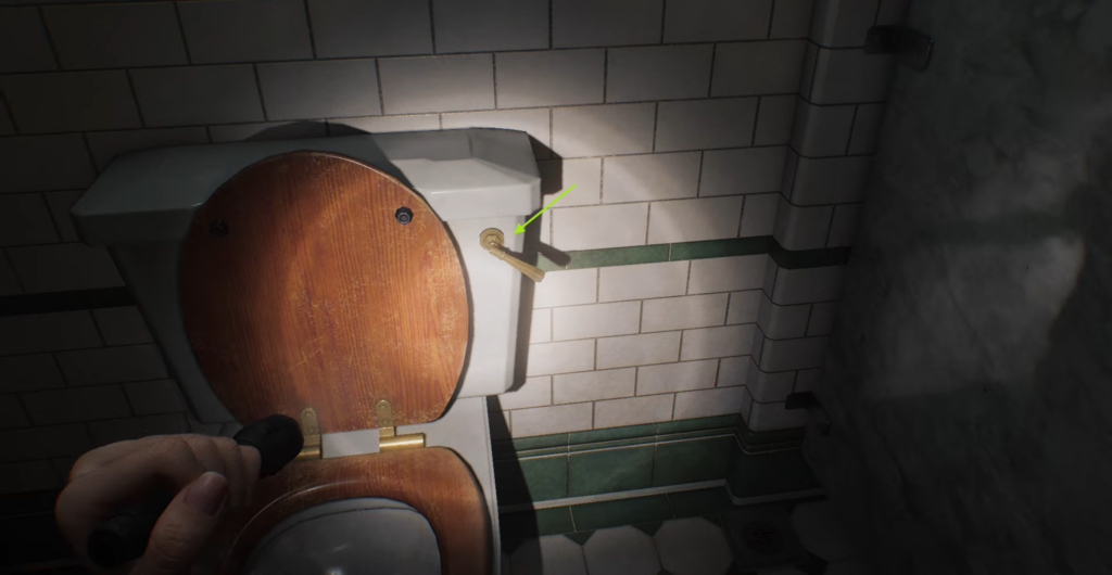 The Toilet Puzzle: After that, go to the restroom area. Approach one of the toilets and flush it exactly 8 times. This action is a mandatory trigger in the game’s code.