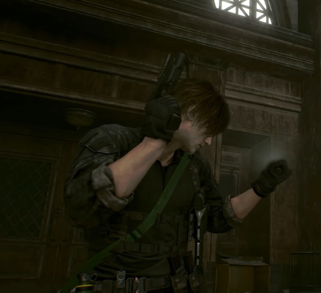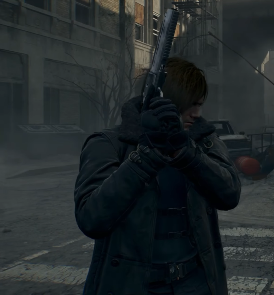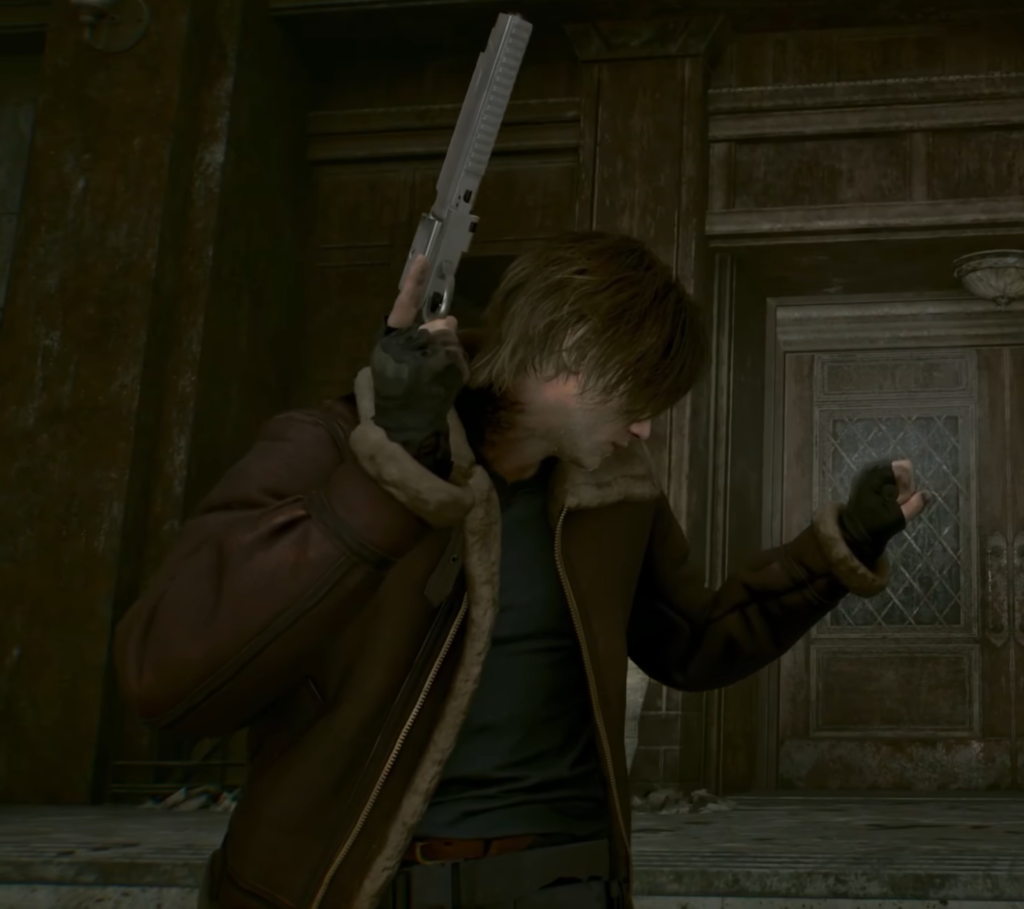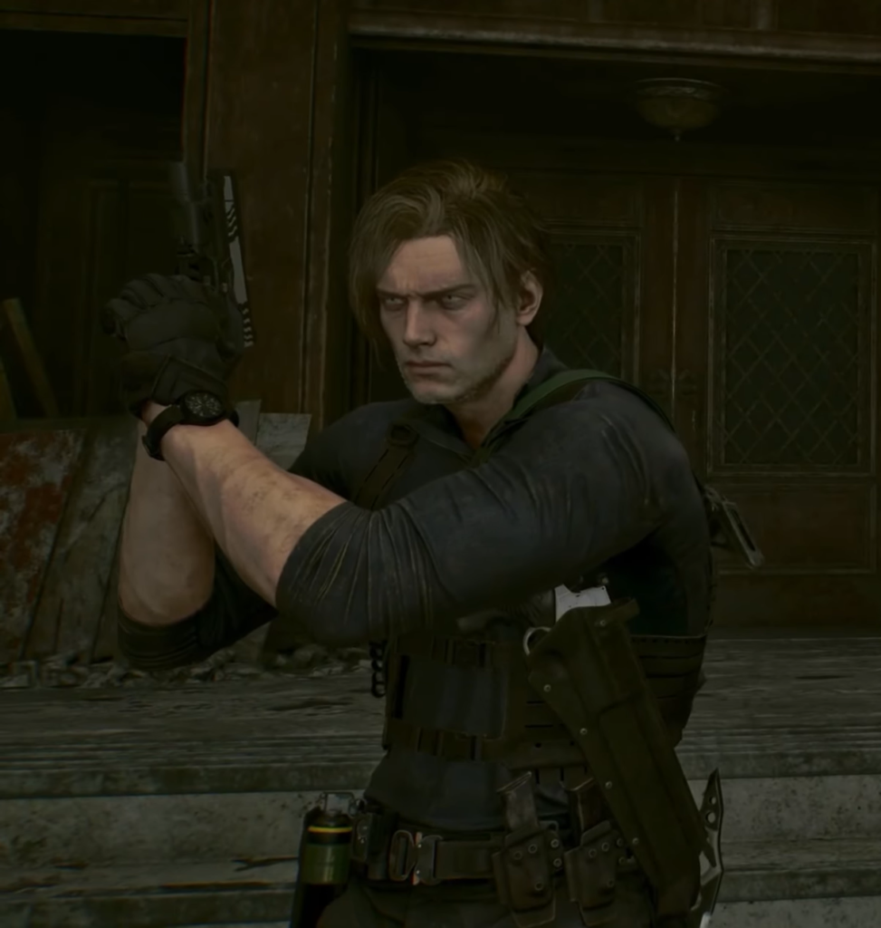 Standard (Default) Leon’s basic appearance, in which he wears a thick black jacket (reminiscent of a raven’s plumage). Like Grace, Leon eventually takes off the jacket during the story, leaving him in a tight-fitting T-shirt that highlights his muscular build.